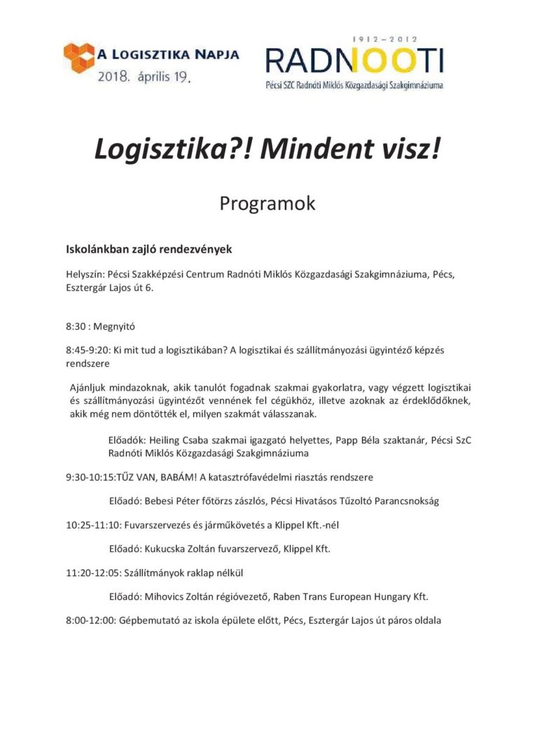 Idén először (és a régióban egyedüliként) A Pécsi Szakképzési Centrum Radnóti Miklós Közgazdasági Szakgimnáziuma is részt vett a nemzetközi Logisztika Napja rendezvénysorozaton.