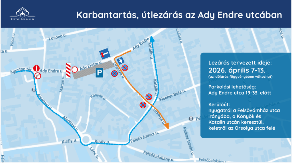 Összehangolt munkálatok kezdődnek húsvét után az Ady Endre utcai ivóvíz- és szennyvízhálózaton Pécsen, a TETTYE FORRÁSHÁZ Zrt. szakemberei aknafedlapot és […]