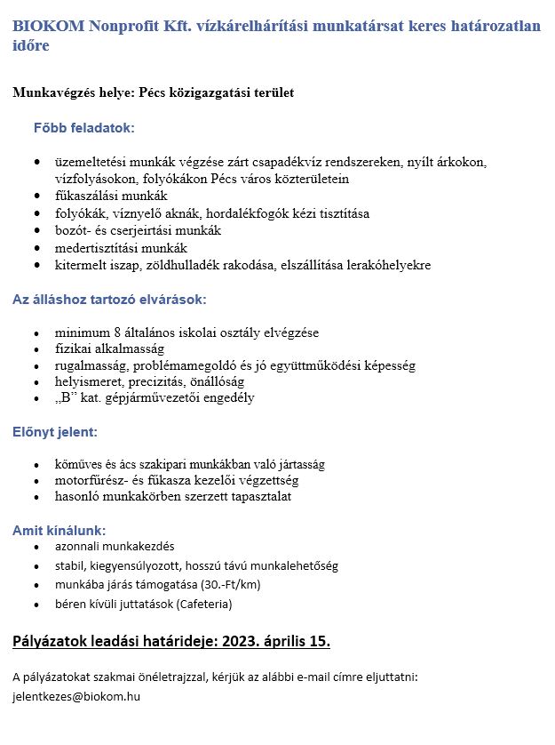 Gépkocsivezető – BIOKOM Nonprofit Kft.