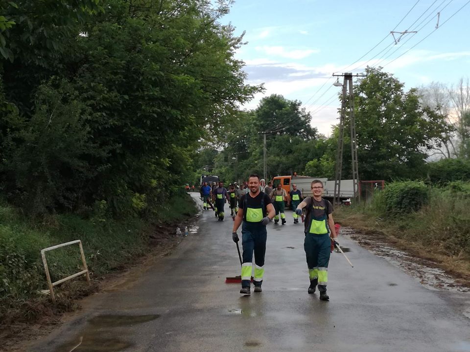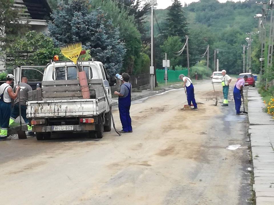 A takarítási munkálatok jelenleg is folynak, eddig kb 150 köbméter iszapot szállítottunk el  a területről, a Biokom munkatársai 12 órás váltásokban dolgoznak a károk elhárításában- Amennyiben további esőzés nem lesz a területen 1-2 napon belül megszűnik az  útlezárás.