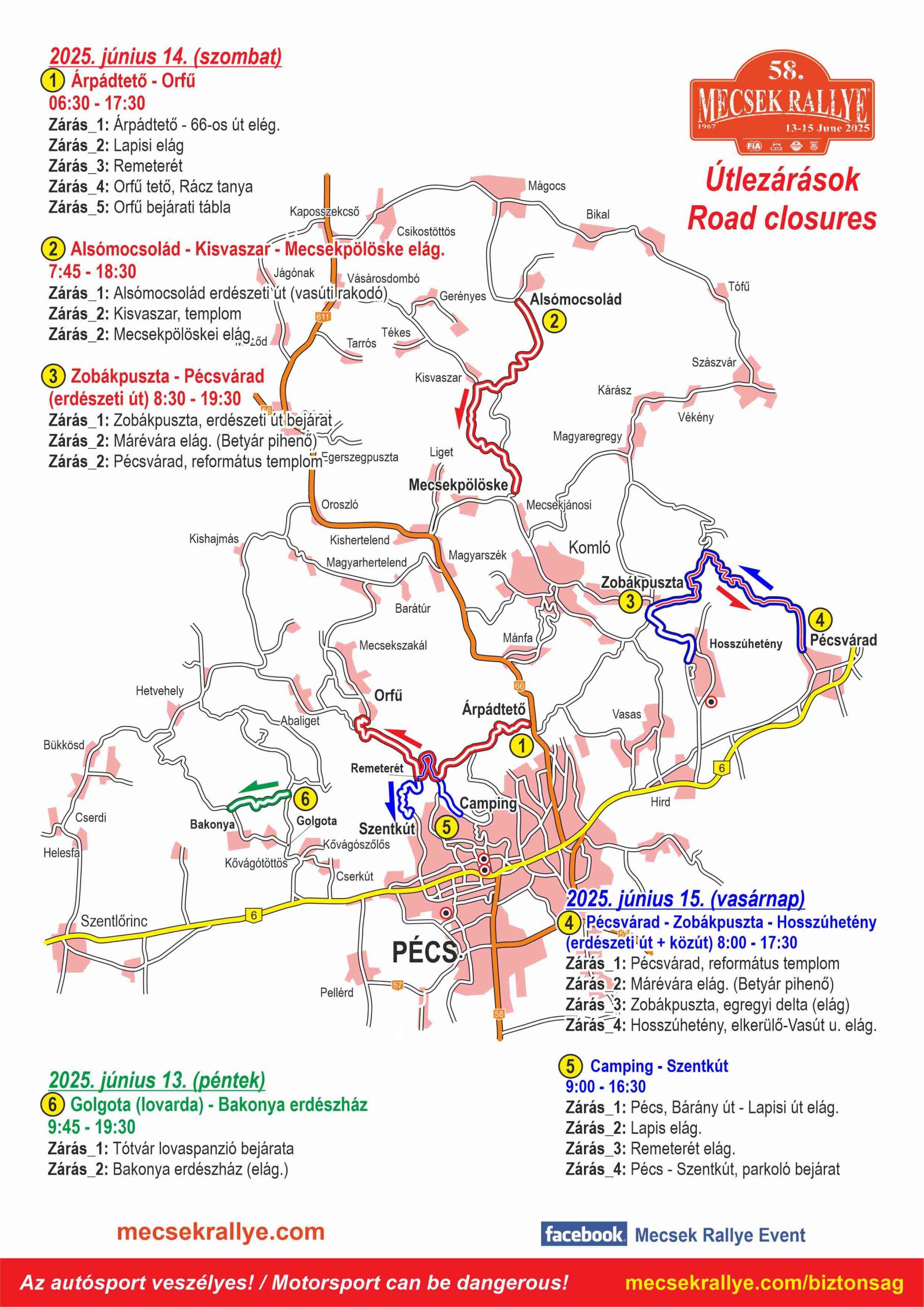 A verseny ideje alatt ideiglenesen több útszakaszt lezárnak. Kérjük, hogy az érintett időszakban ennek figyelembevételével tervezzék meg útjukat. Az alábbi térképen megtekinthetők a lezárások pontos helyszínei és időpontjai.