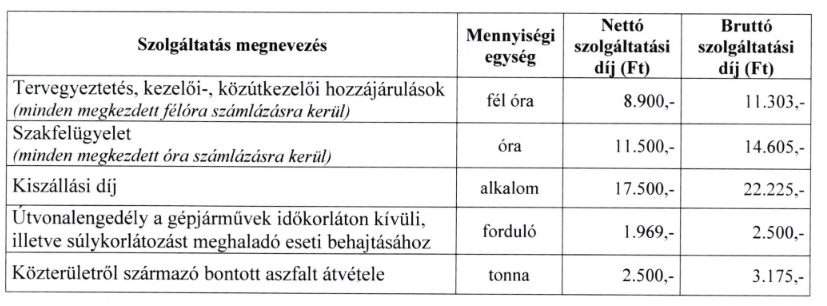 - Tájékoztató a városüzemeltetési feladatokhoz tartozó, közmű- és vízrendezési területhez kapcsolódó szakfelügyeleti előírásokról és díjakról